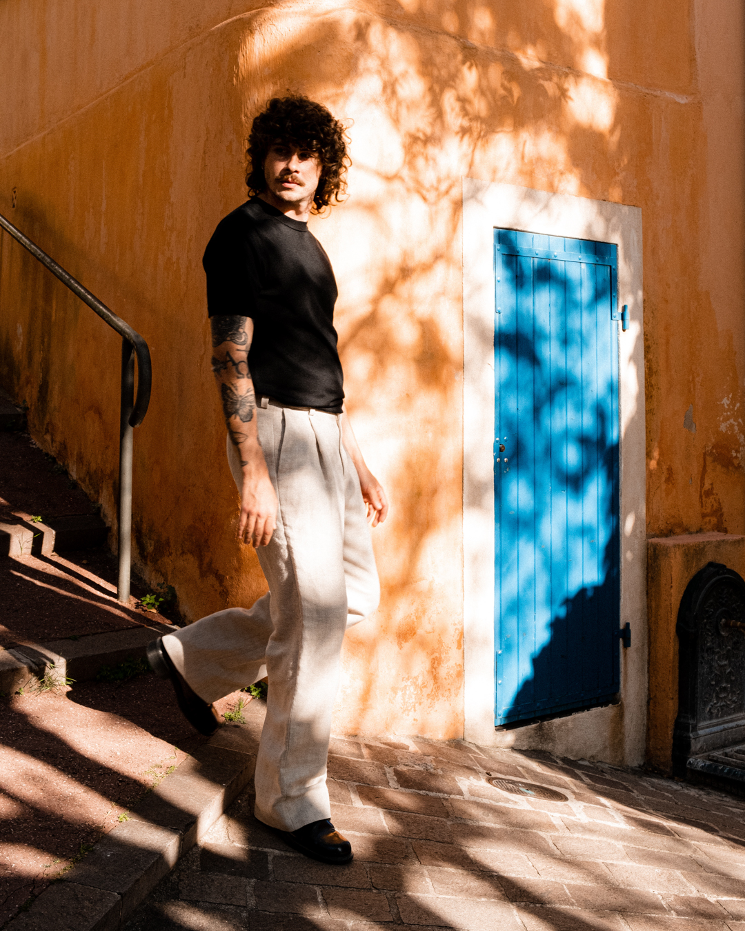 Gémenos est une collection de pantalons et de bermudas à plis proposés dans une déclinaison de 8 tissus. Chaque pièce est unique et est fabriquée à la main à Marseille de façon artisanale.